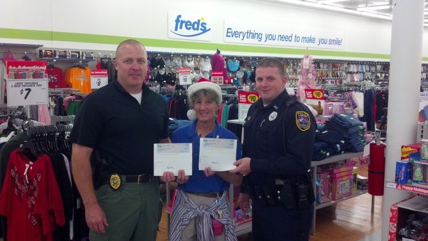 The Department of Public Safety received a grant from Fred’s Department Store as part of its Hometown Heroes “Hero Hats” program. The grant of over $400 will be used to purchase equipment for the Police and Fire department. Store Manager Sheilah Johnson presented Chief David Daniel with the grant.